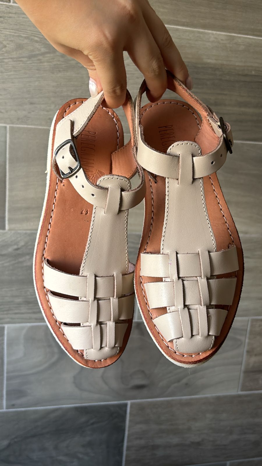 Peregrinas Cangrejeras color Hueso 100% piel vacuno, suela crepe antiderrapante, hechas a mano por artesanos mexicanos.