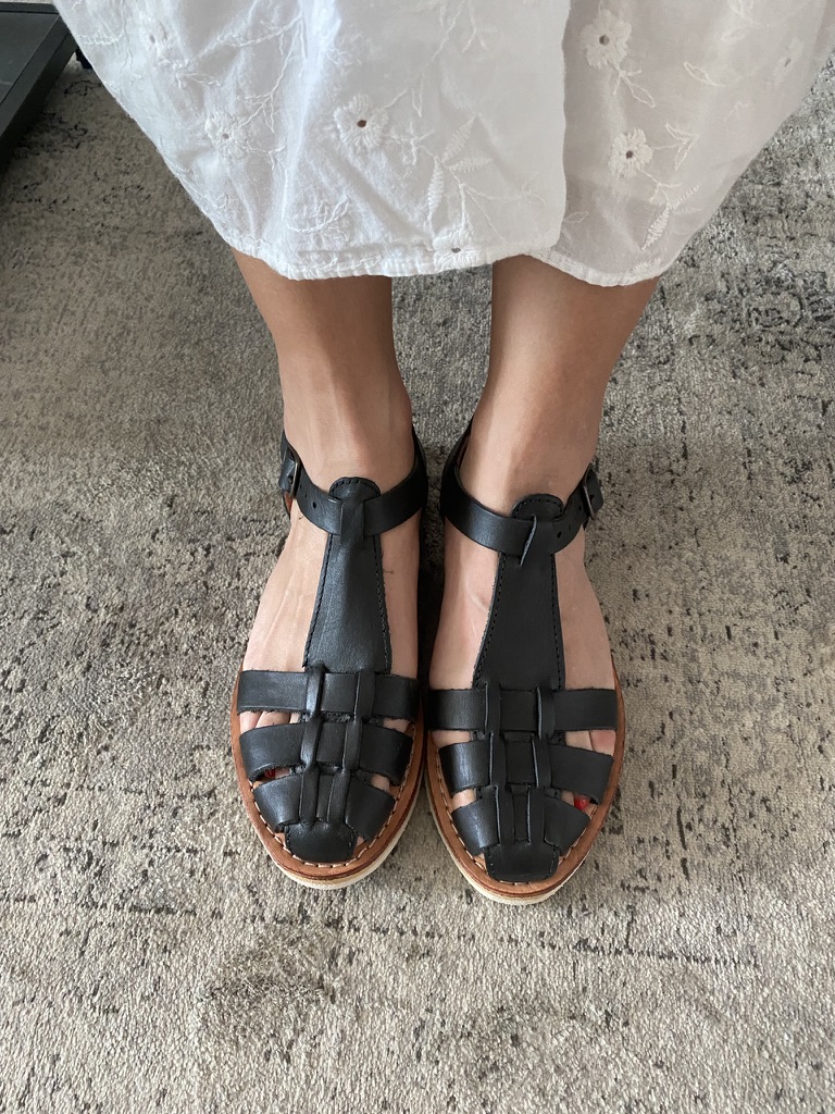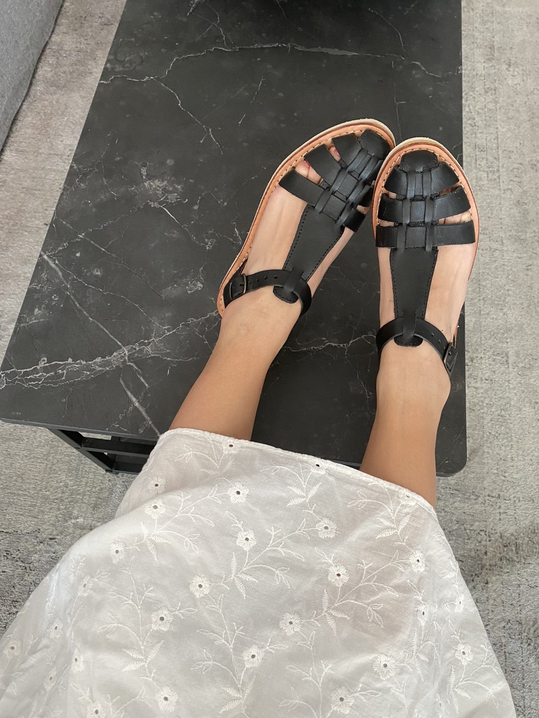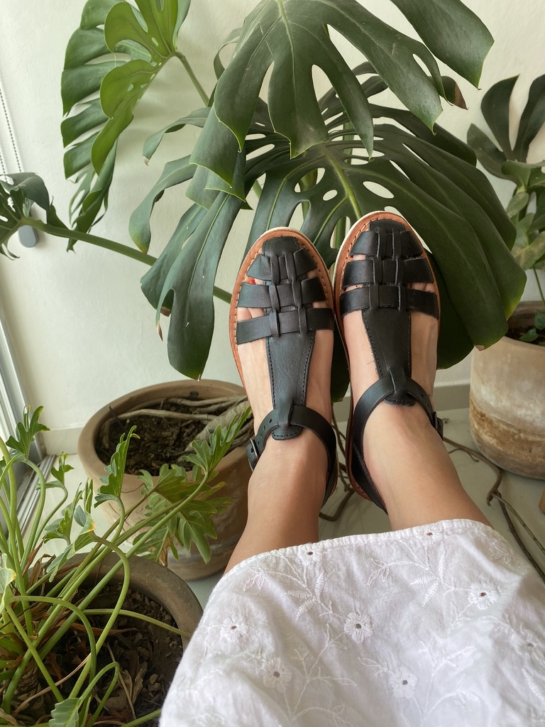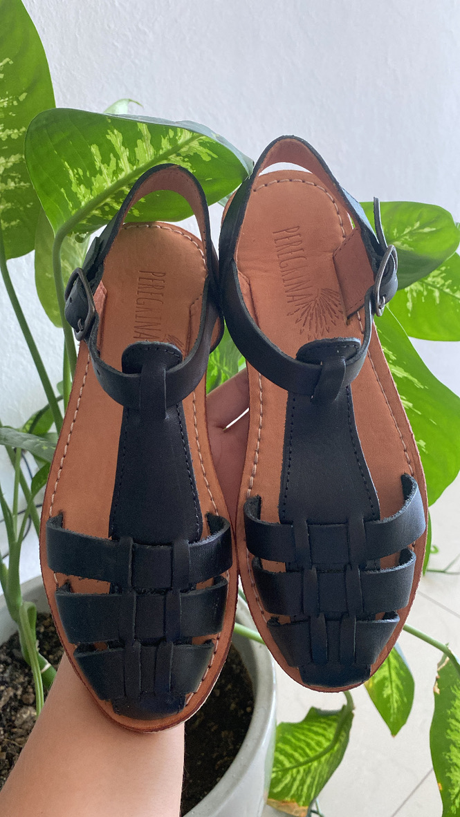 Peregrinas Cangrejeras color negro 100% piel vacuno, suela crepe antiderrapante, hechas a mano por artesanos mexicanos.