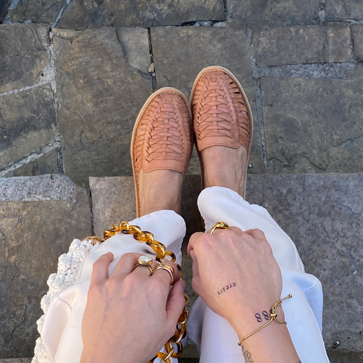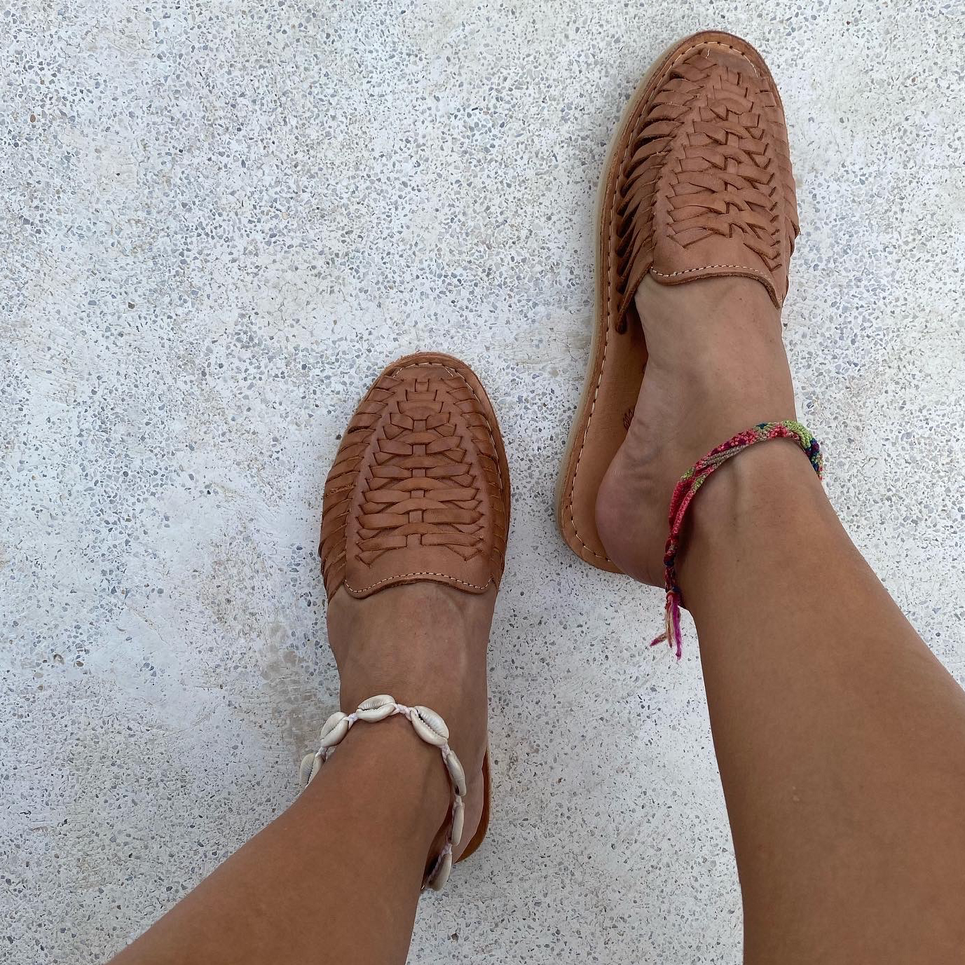 Peregrinas 100% de piel, hechas a mano por artesanos mexicanos, incluye una pulserita para el tobillo de regalo.