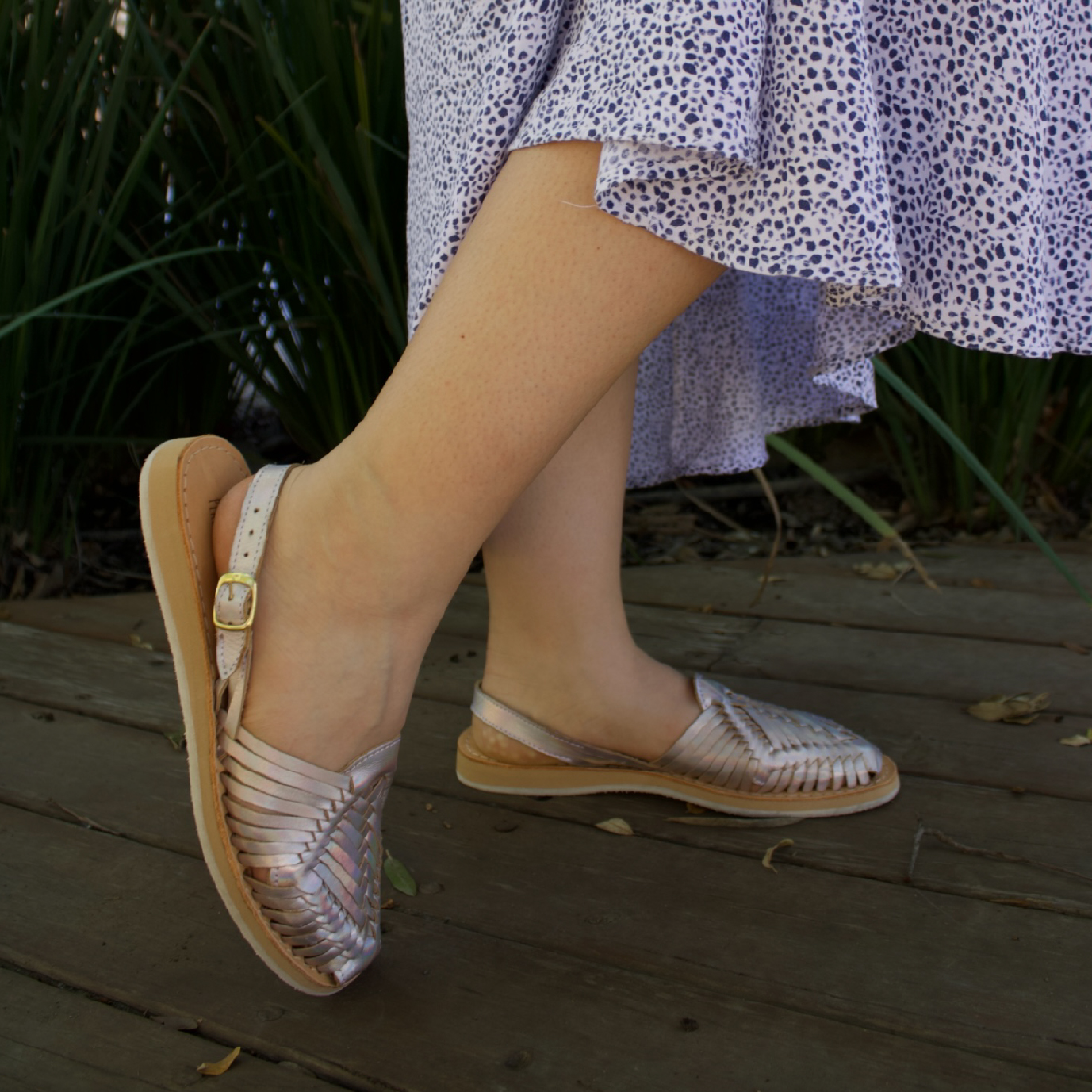 Peregrinas 100% de piel, hechas a mano por artesanos mexicanos, incluye una pulserita para el tobillo de regalo.