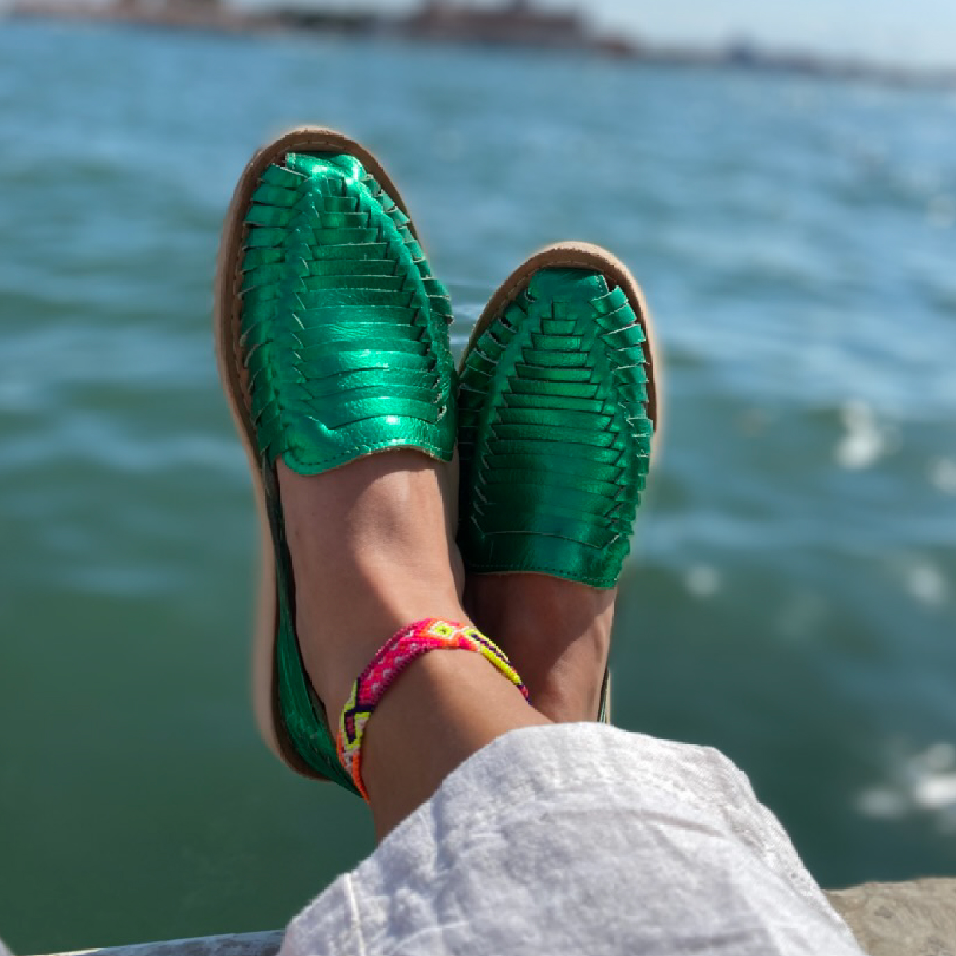 Peregrinas 100% de piel, hechas a mano por artesanos mexicanos, incluye una pulserita para el tobillo de regalo.